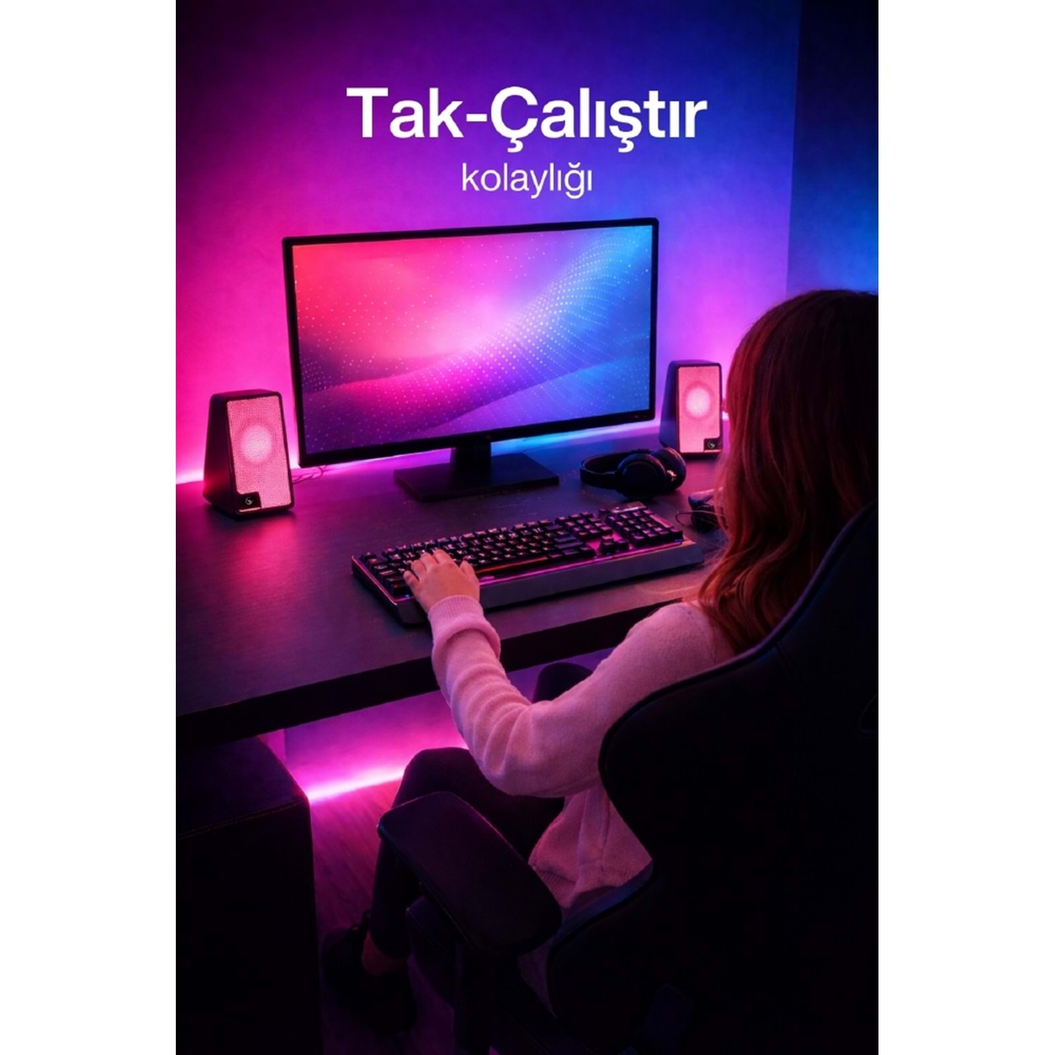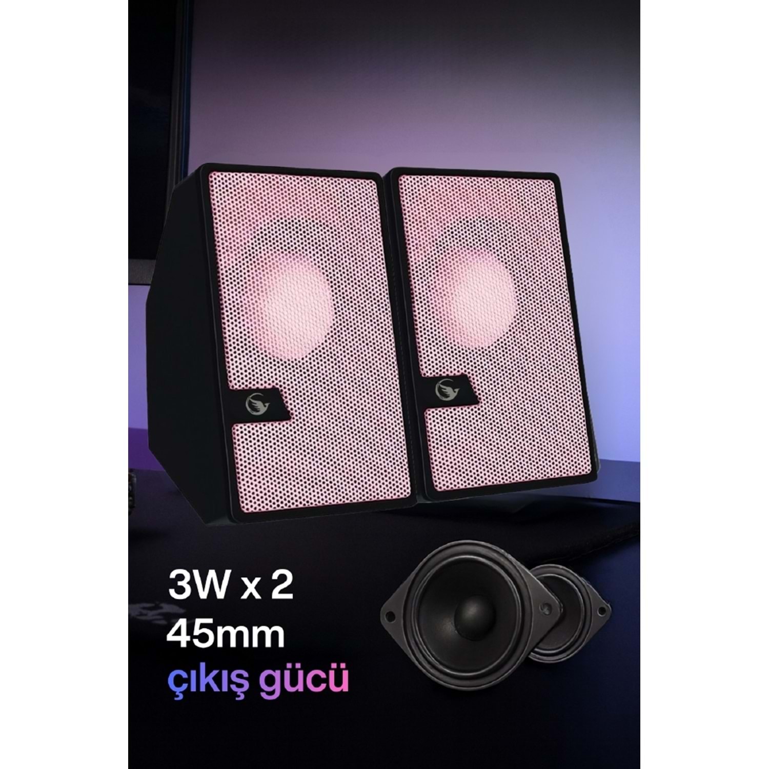 Sprange SR-PN784 2.0 3W*2 USB + 3.5mm USB 5V Hoparlör Pembe SRPN784