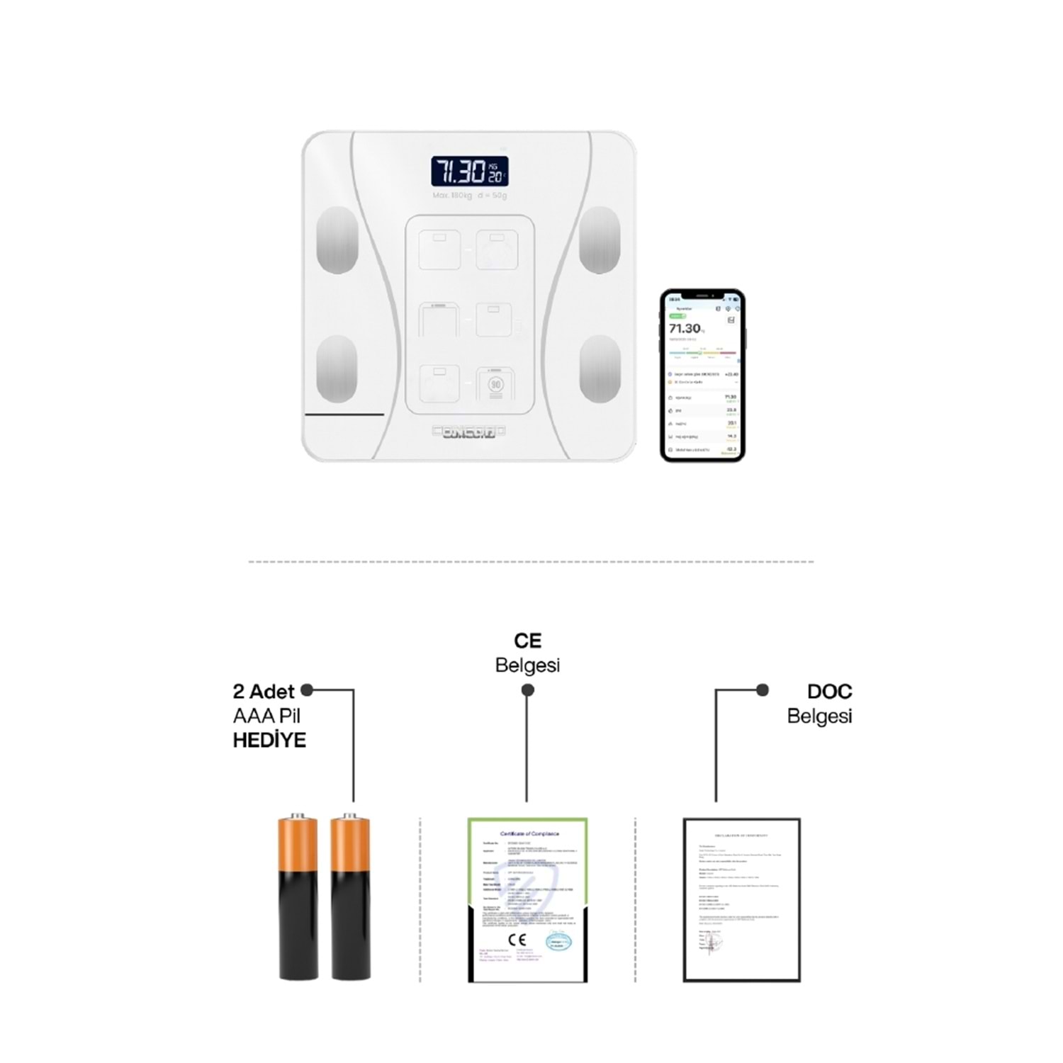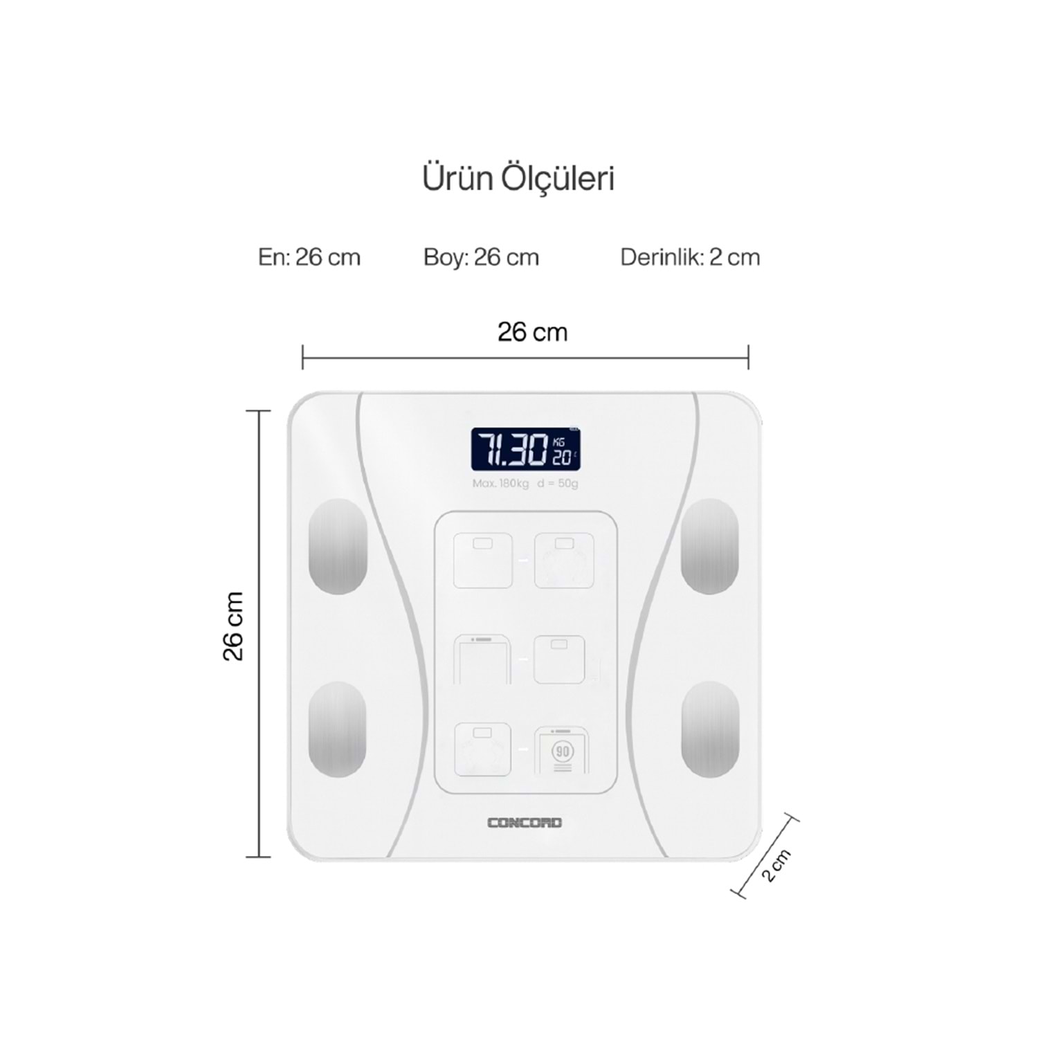 CONCORD C-W01 Akıllı Bluetooth Baskül Beyaz CW01
