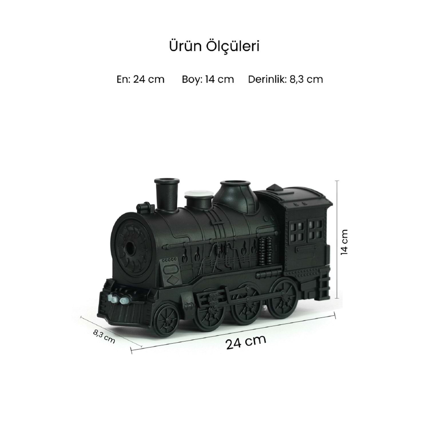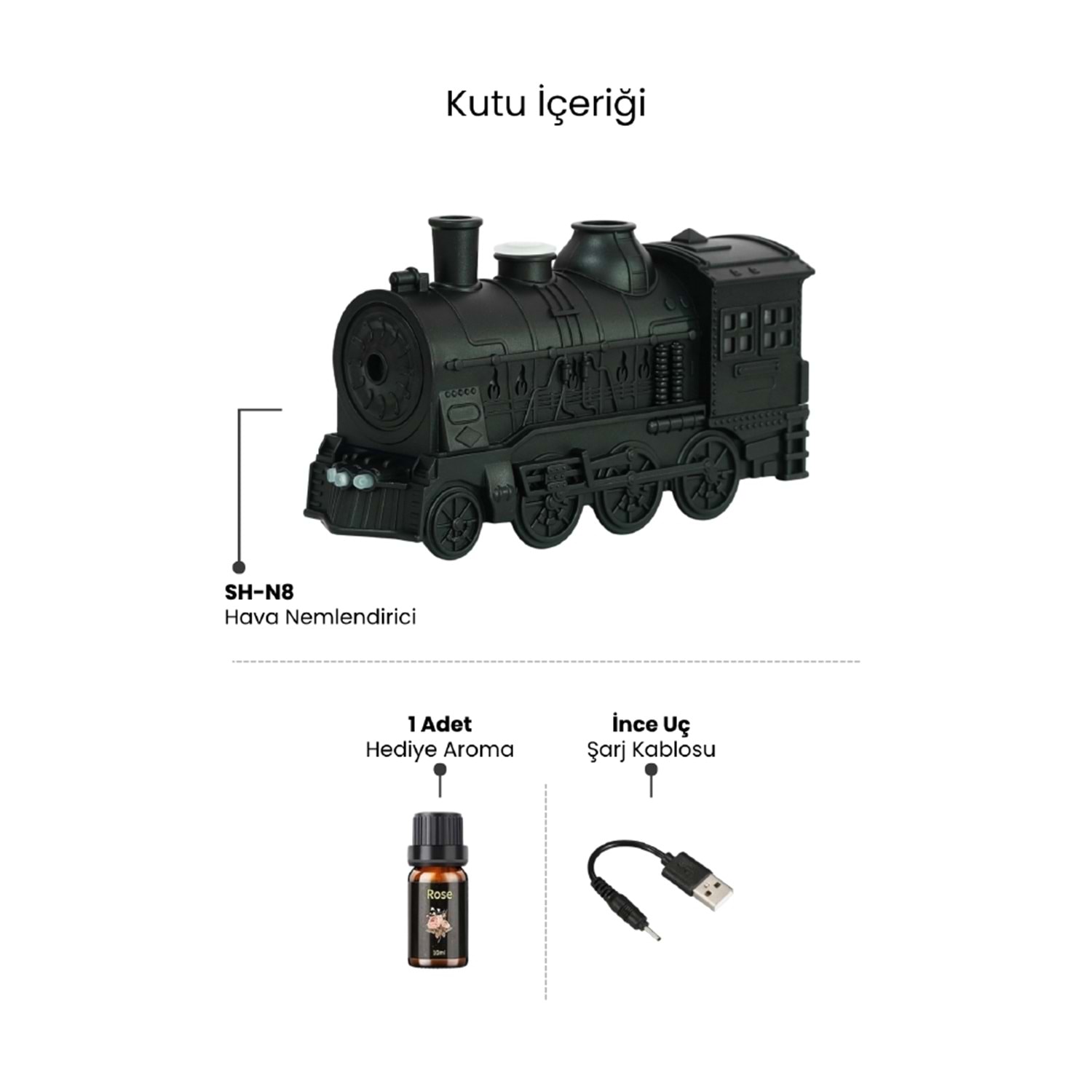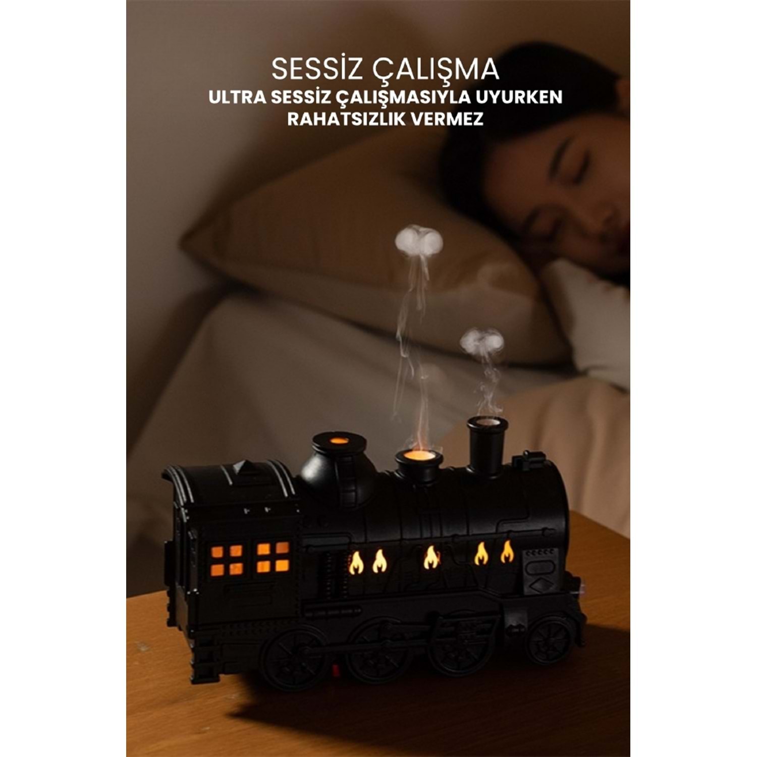 - Su Kapasitesi : 350 ML - Sessiz Çalışma - Tek Buhar Çıkış Noktası - Tren Görünümlü - Alev Efekti - Uygulanabilir Alan : 10-40 m2 - Aromaterapi - Kumanda İle Kontrol - 7 Farklı LED Aydınlatma - Aroma Hediyeli