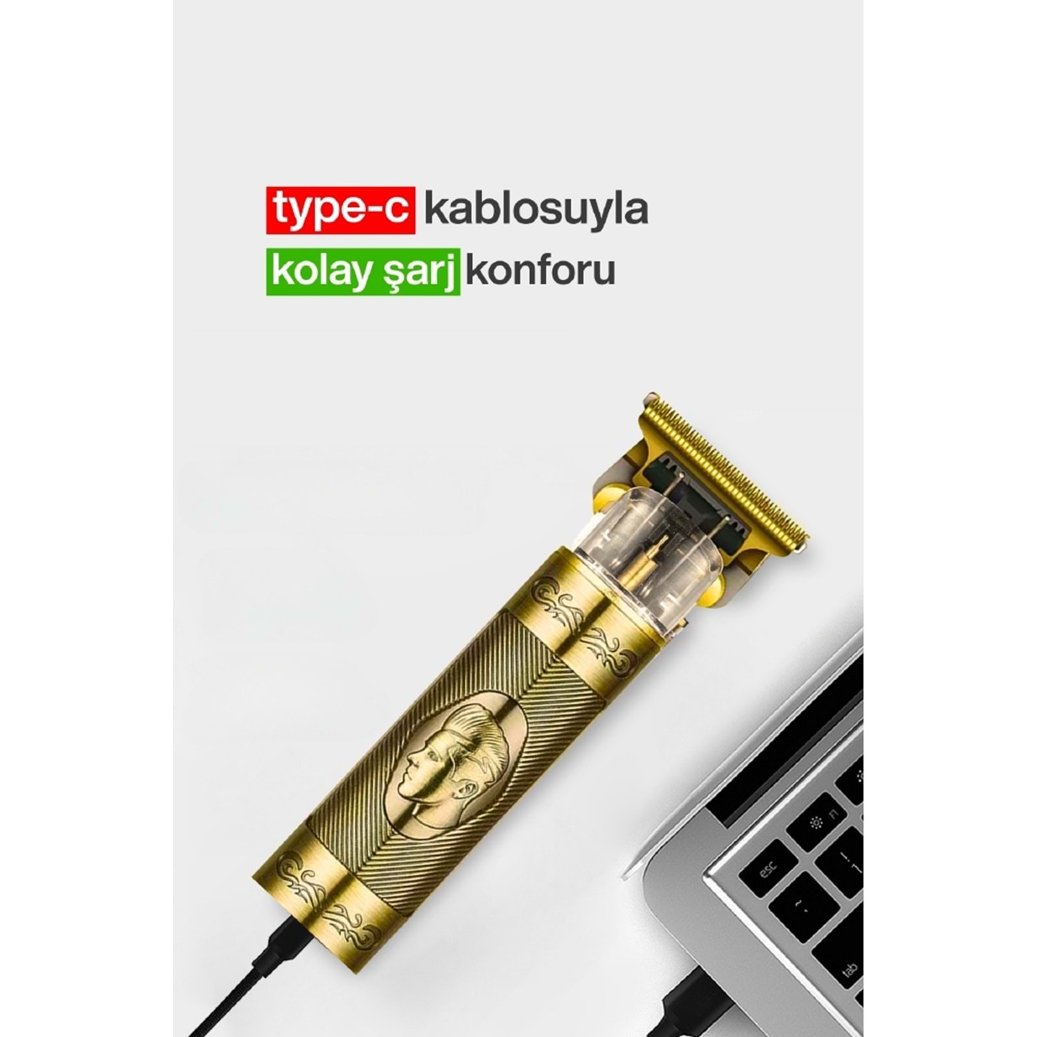 - DC şarjlı kuaför makinası - Net Ağırlık: 250 Gr. - Güç: 3W - Şarj: Dahili USB doğrudan şarj - TYPE-C şarj bağlantı noktası - Sakal, Burun ve Kulaklar için 3 ayrı başlık çeşidi