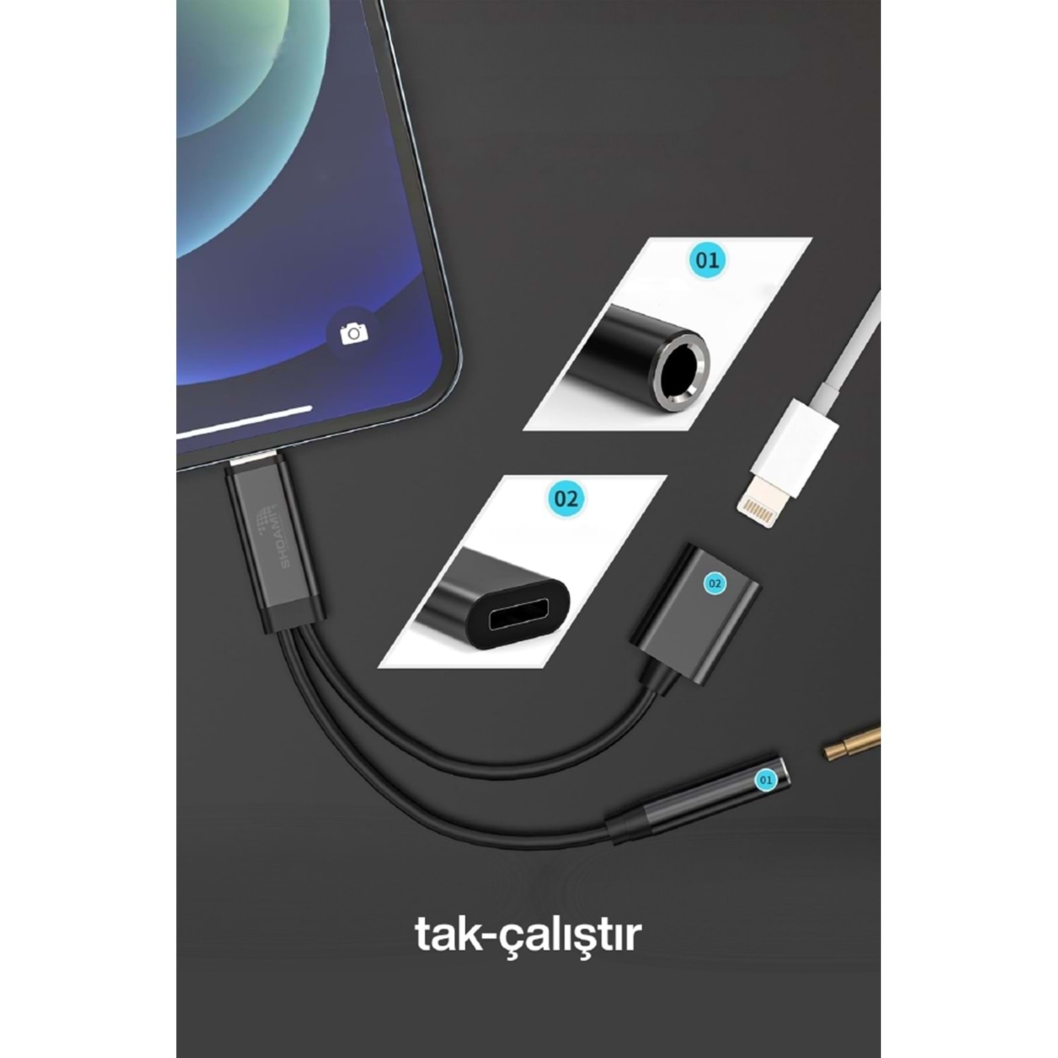 - 2 in1 Lightning Aux Çevirici