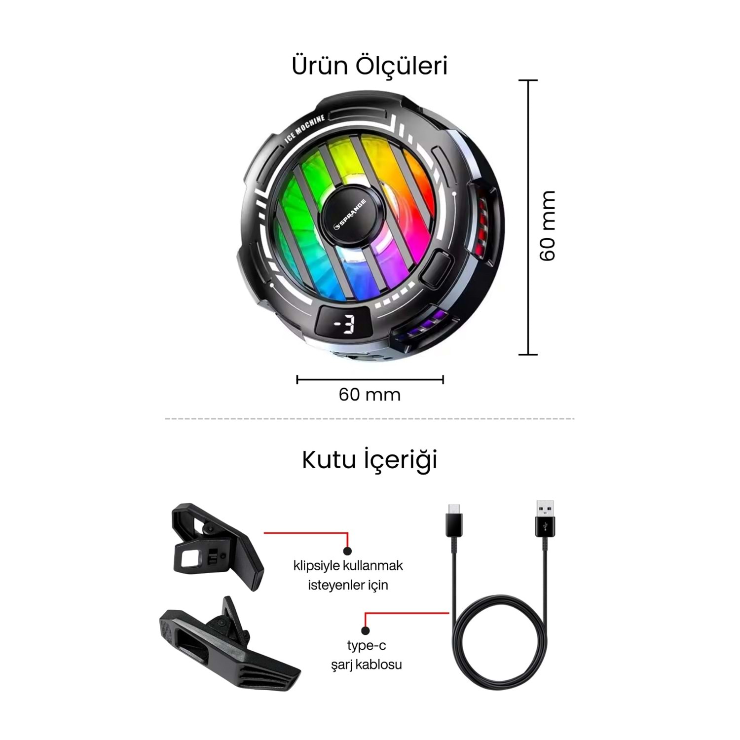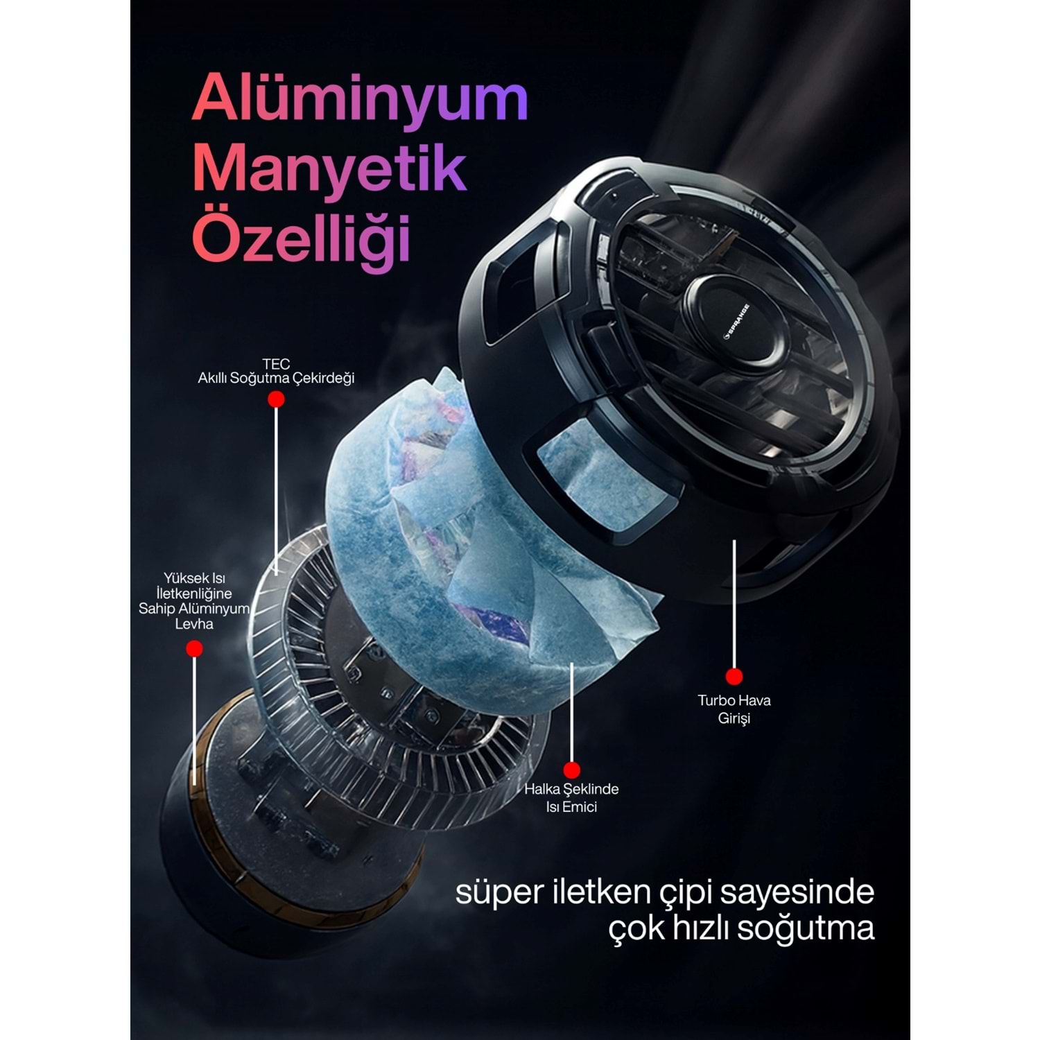 SPRANGE SR-MC7 RGB Aydınlatma Manyetik 3 Kademeli 8*5*4cm Telefon Soğutucu SRMC7